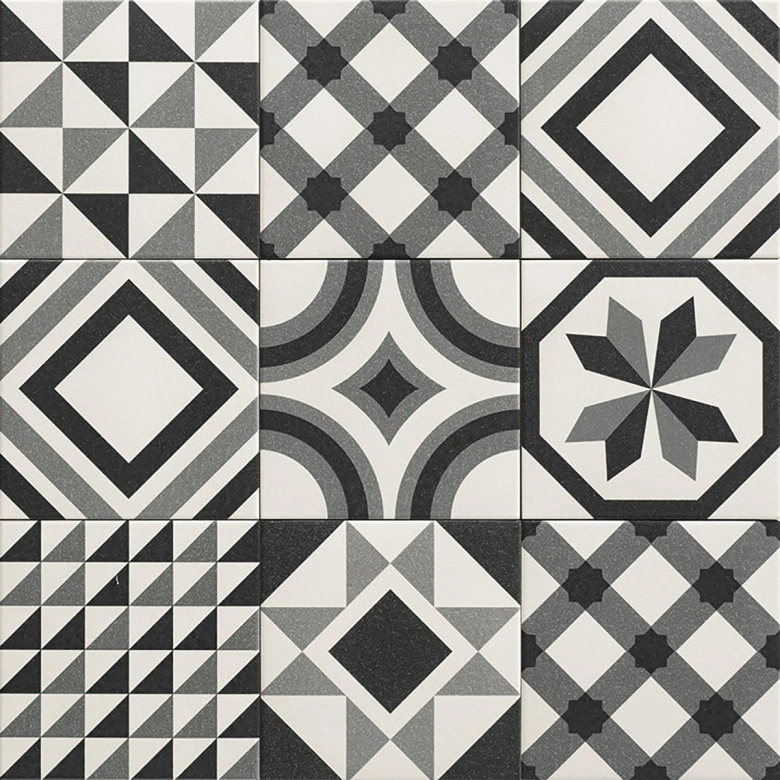 Carrelage sol effet carreaux de ciment Richelieu trinity black 20*20 cm