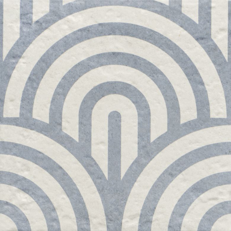 Carrelage sol effet carreaux de ciment Dalí décor bleu arc de cercle 20x20 cm