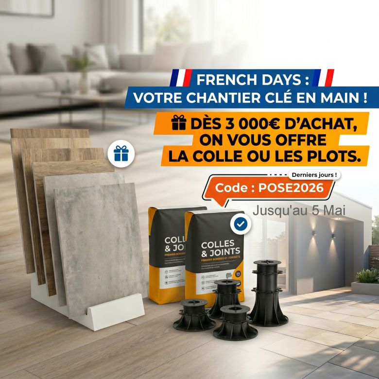 La colle ou les plots offerts à partir de 3000€ d'achat avec le code : POSE2026